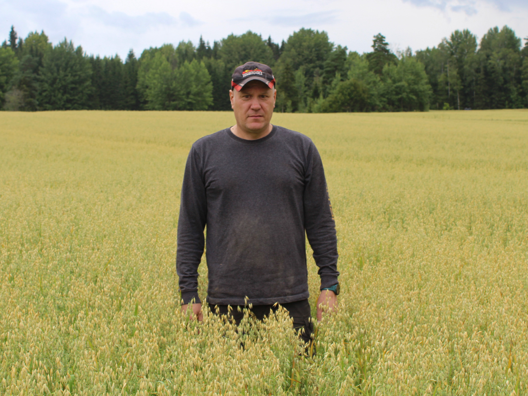 ”Tänä vuonna kaura versoi hyvin ja kylvömäärä oli sopiva. Enempää kuin viisisataa en ole kylvänyt – multaisille maille joskus vähemmänkin”, kertoo viljelijä.